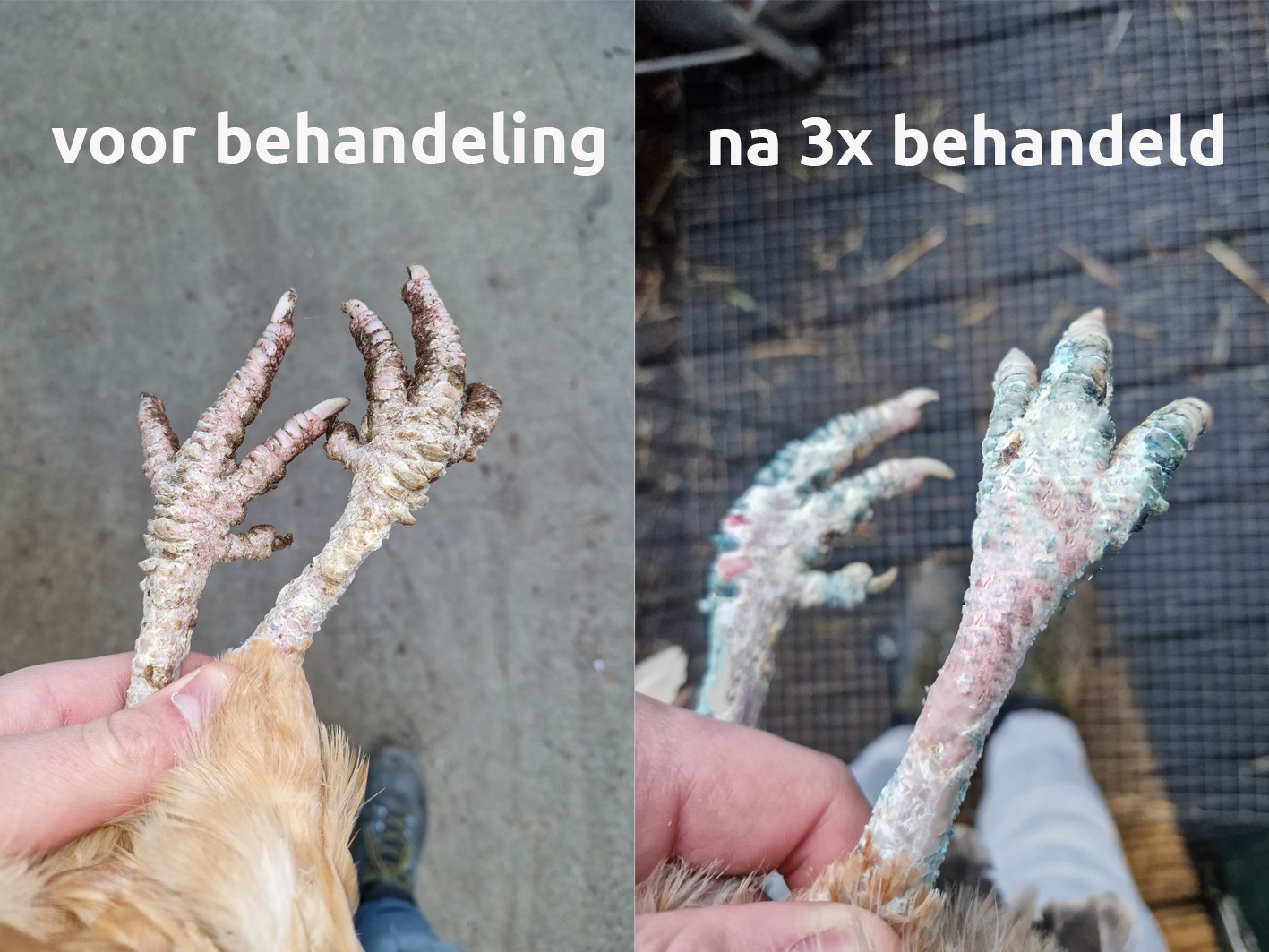 Deze spray zal de mijten die in de poten zitten doden, daarna werkt het verzachtend voor de poten en kunnen de poten weer goed herstellen.